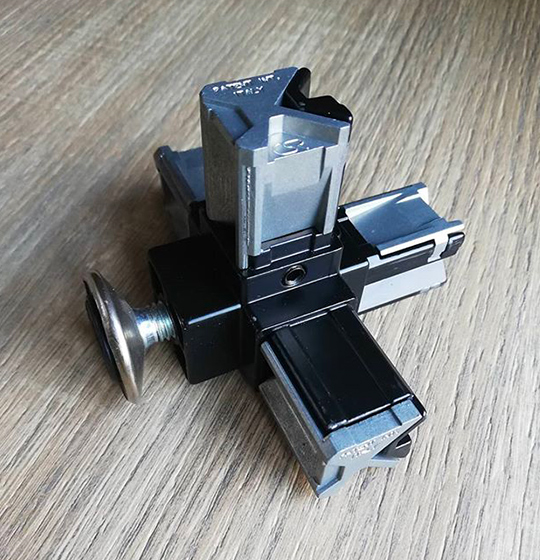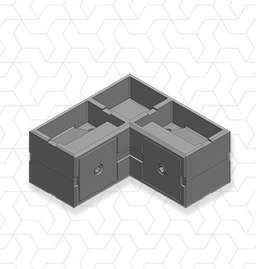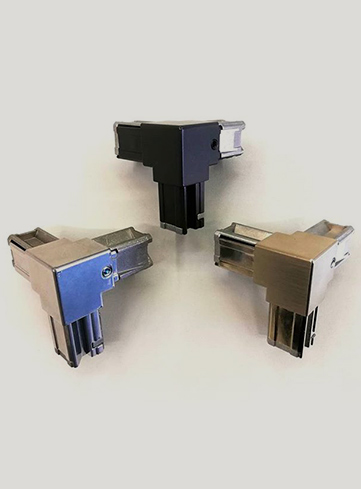 Giunto 3 vie ruotato a 45 gradi per tubolari quadri trafilati 20x20mm
